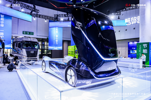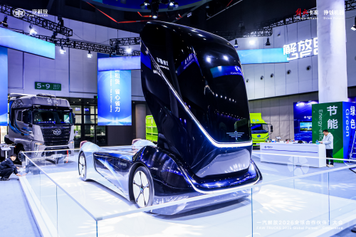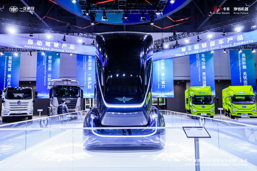 在此背景下,一汽解放在近日召开的2026全球合作伙伴大会上,正式推出引领行业的智能电动底盘——“星钥滑板底盘”。这款兼具超跑造型与硬核科技于一身的智能电动底盘,不仅以多项行业首创技术打破传统商用车的设计桎梏,更凭借对运输效率、安全与成本的全维度优化,为未来运输形态的重构提供了核心解决方案。